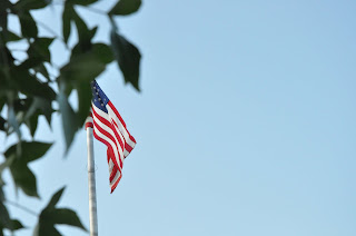 I believe this picture has strong composition, because the main subject is not dead set in the center. The American Flag is off to the side. This photo will capture the viewer's eyes because this photo is not boring and has multiple things going on.